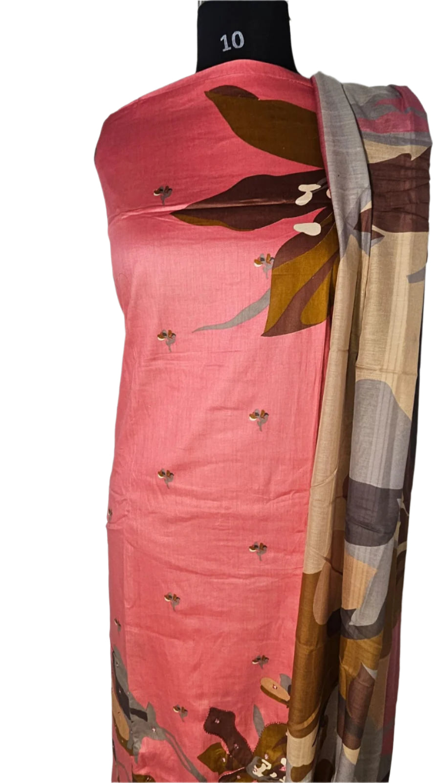 डिजाइन: ऑर्किड किस मैजेंटा पुष्प प्रिंट के साथ ऑफ-व्हाइट, फ्रिल्स के साथ बिना आस्तीन।