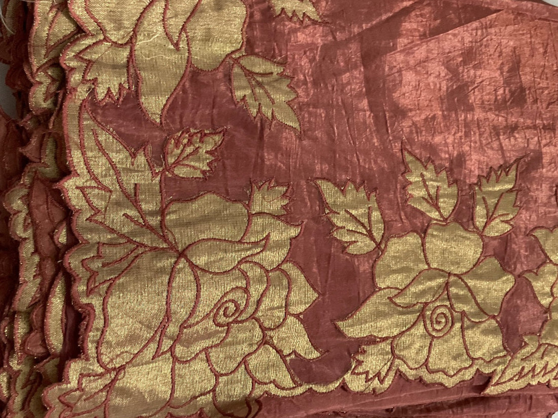 ऑफ-व्हाइट आर्किड किस के साथ मैजेंटा पुष्प प्रिंट फ्रिल्ड नाइटी।