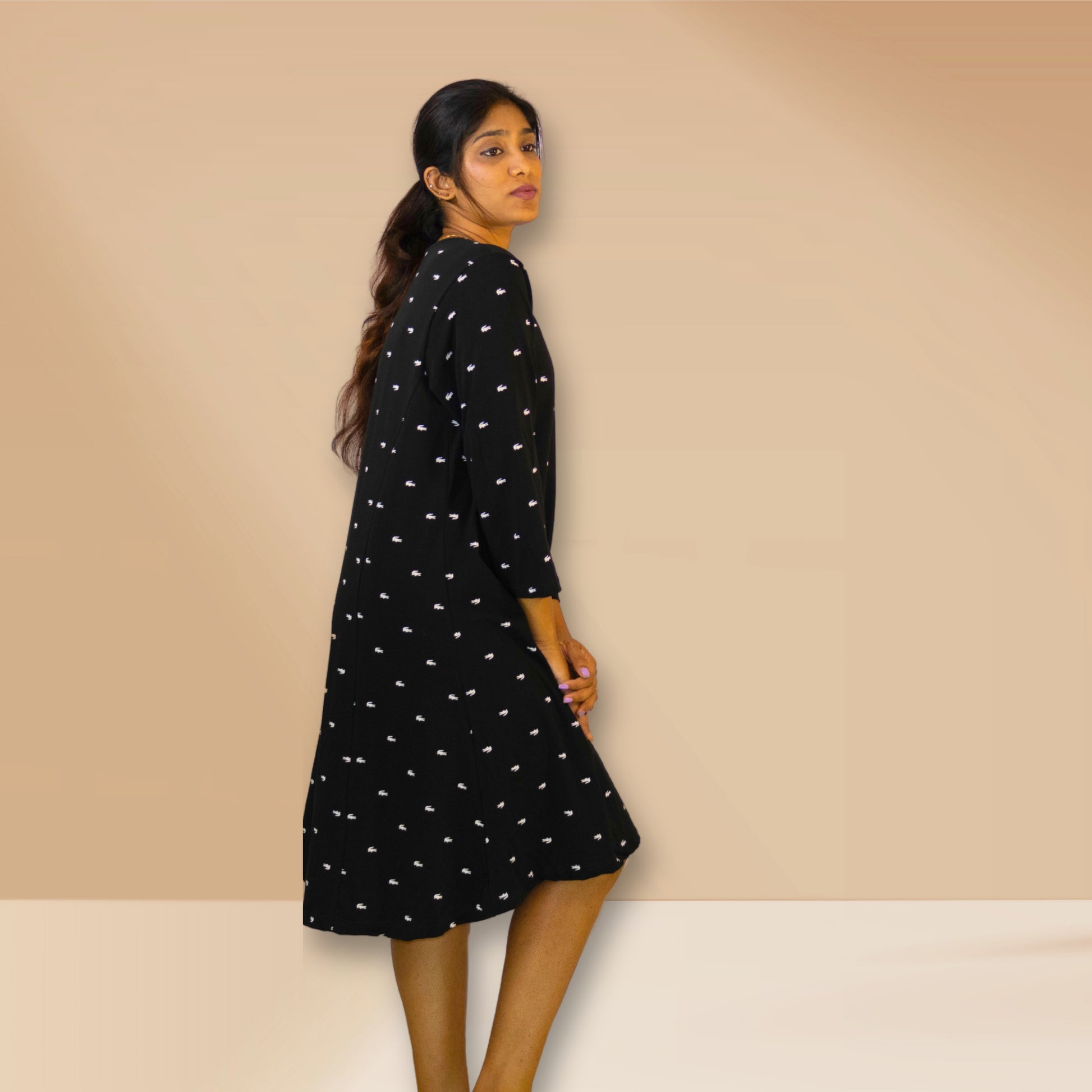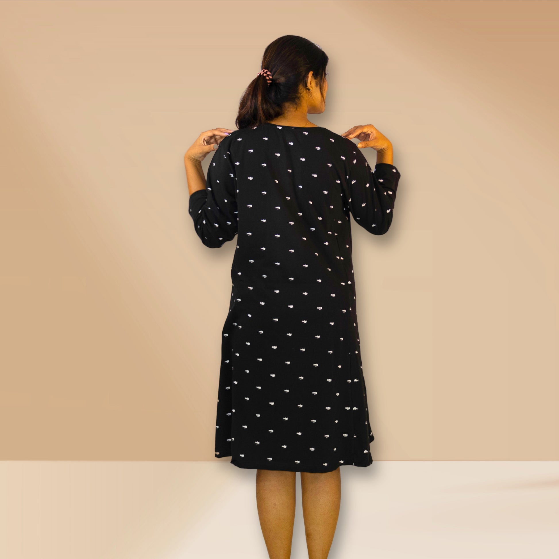 डिजाइन: मगरमच्छ प्रिंट के साथ काले रंग की नाइटी।