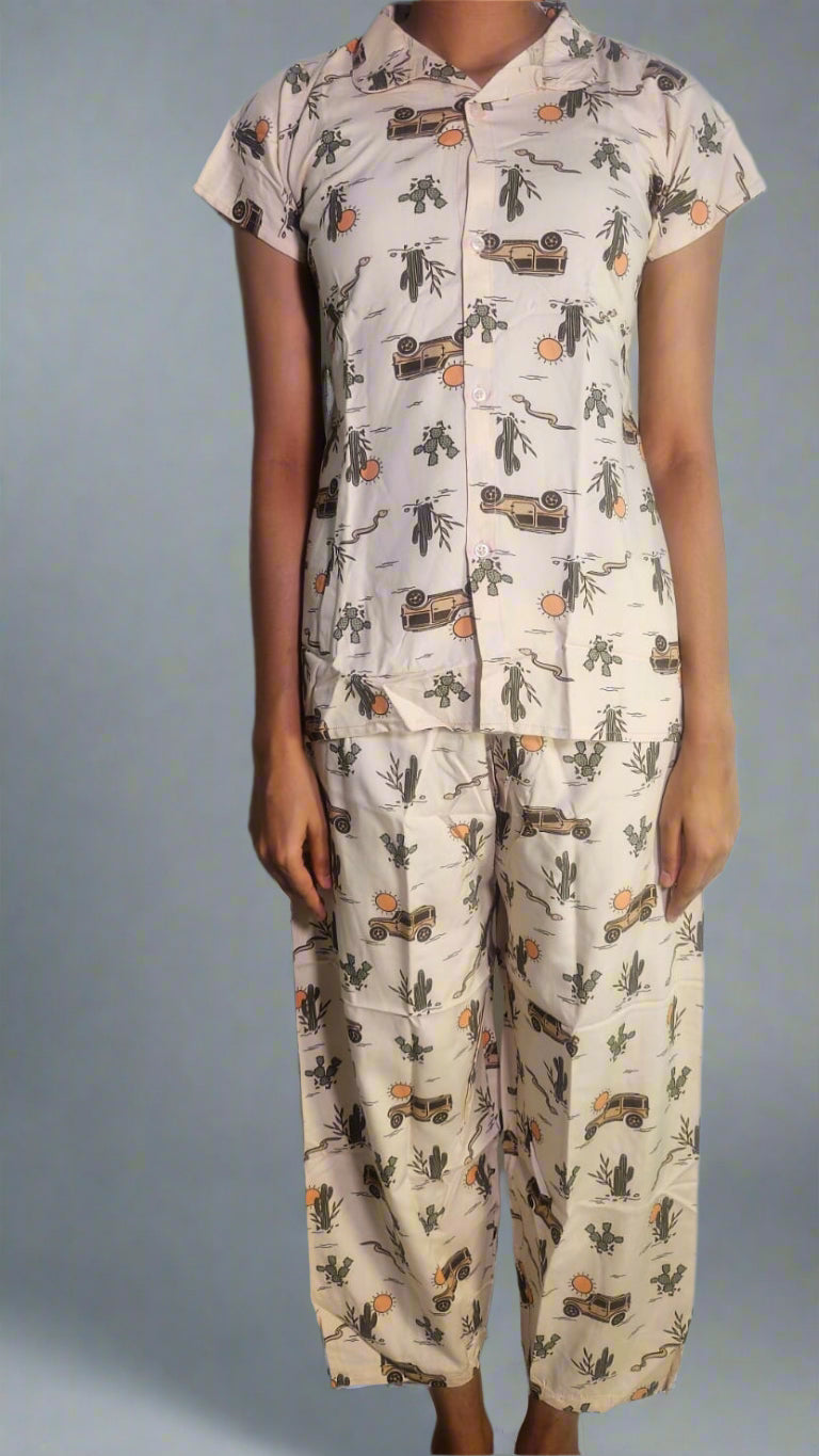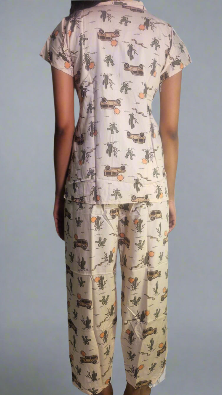 स्काई ब्लू रोज़ प्रिंट कॉटन को-ऑर्ड सेट