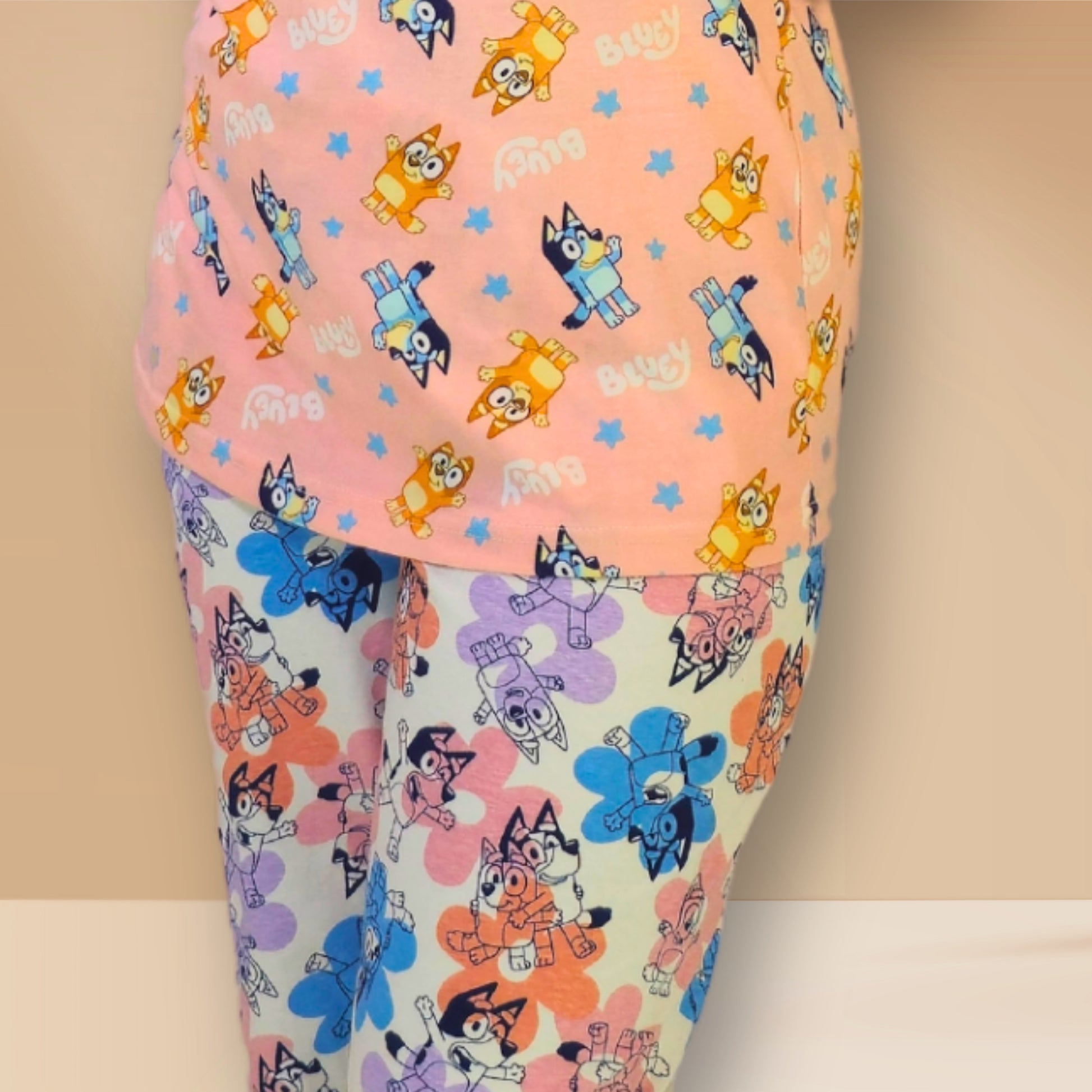 शीर्ष: नीले प्रिंट के साथ हश पपी पीच।