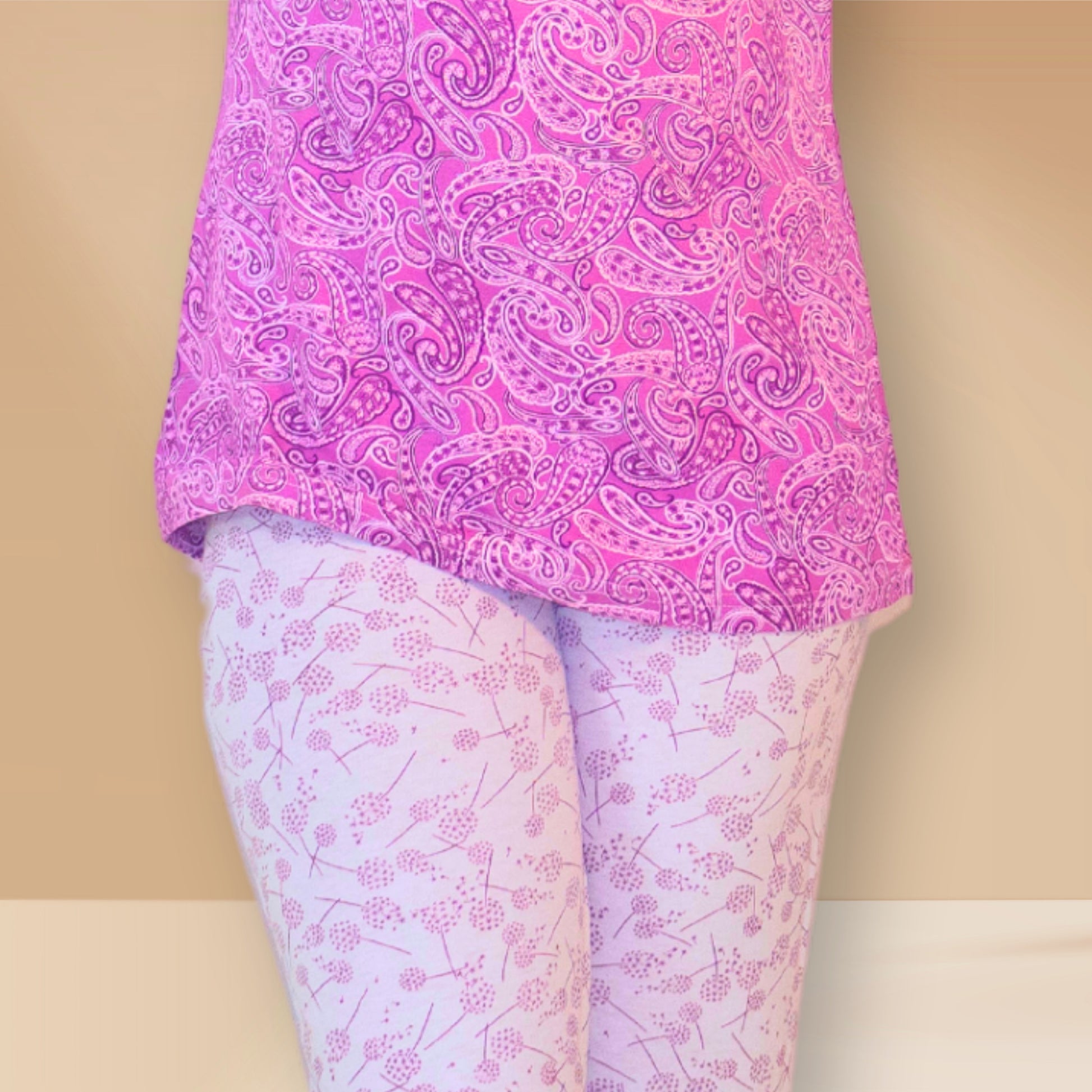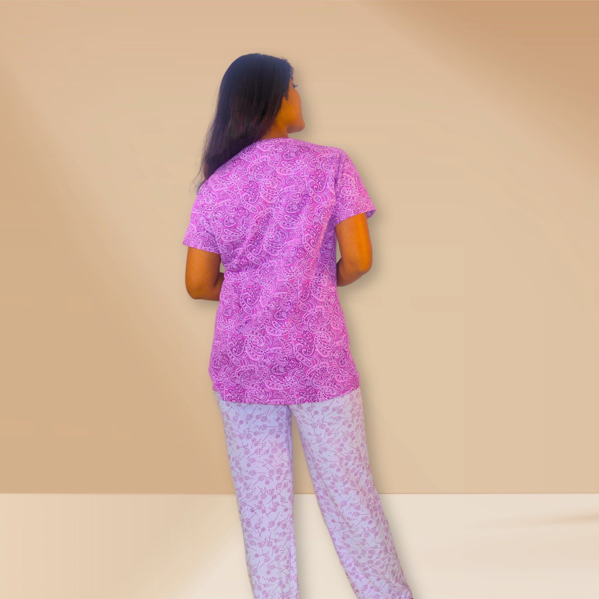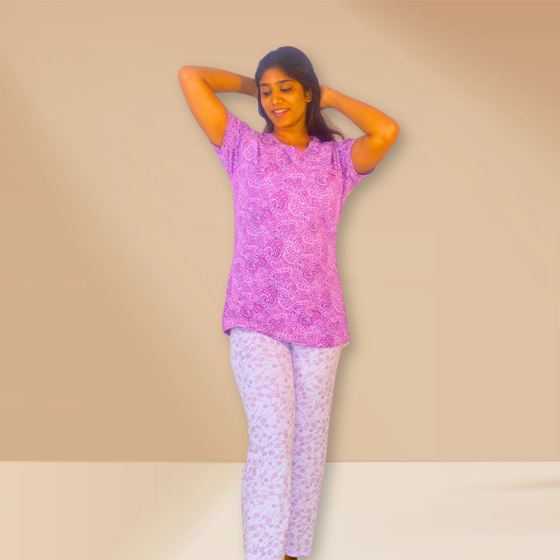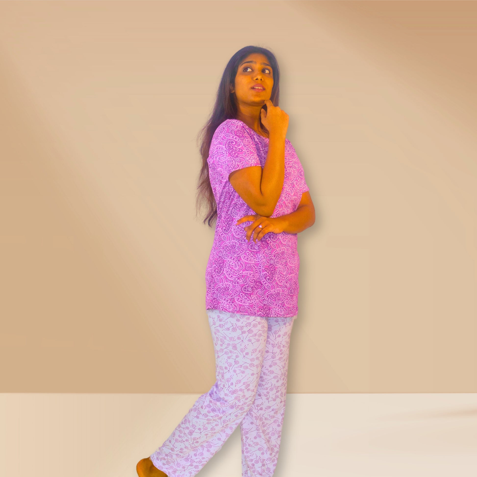 मैला मैजेंटा-गुलाबी और सफेद अमूर्त आम और पुष्प प्रिंट के साथ एम एंड एम नाइट ड्रेस