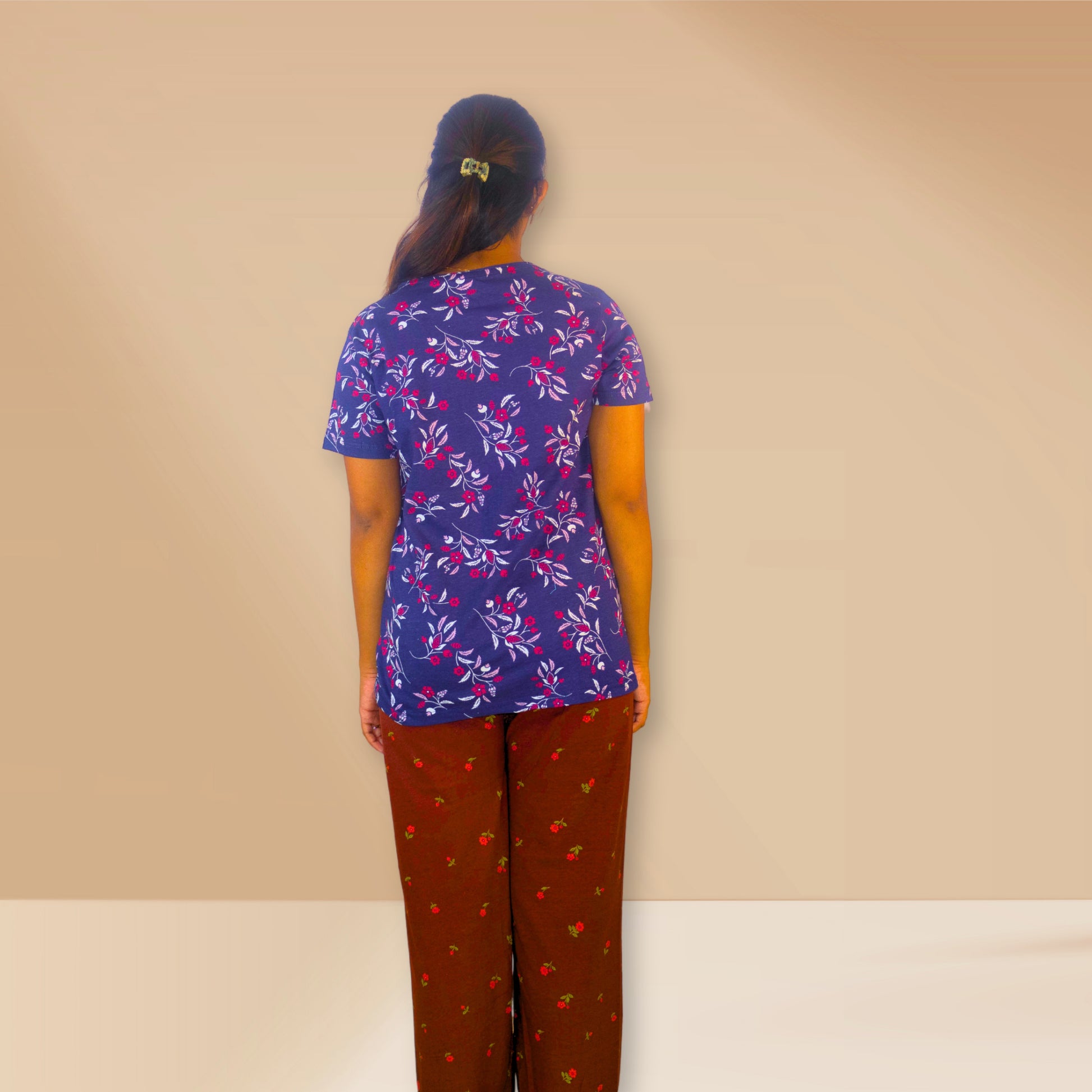 Bottom: Ankle length Irish coffee coloured bottoms with small flower prints