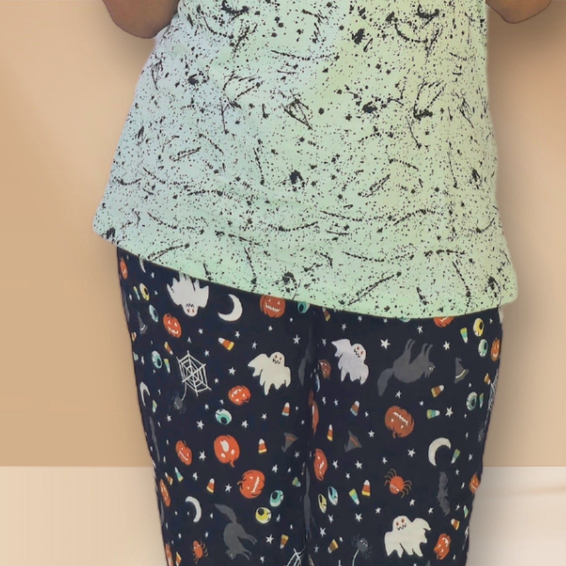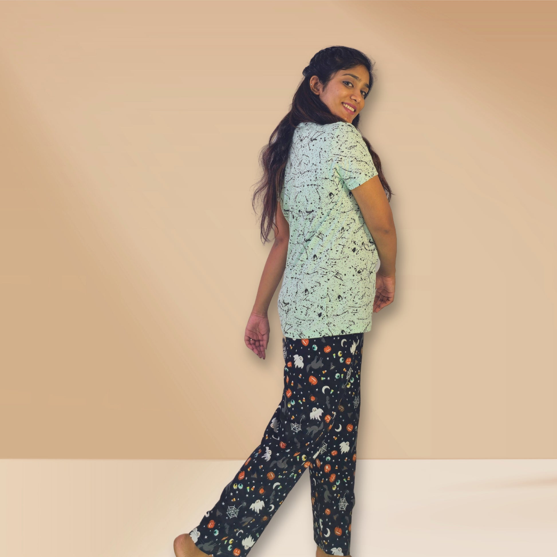 Bottom: Ankle length black with colourful abstract prints.
