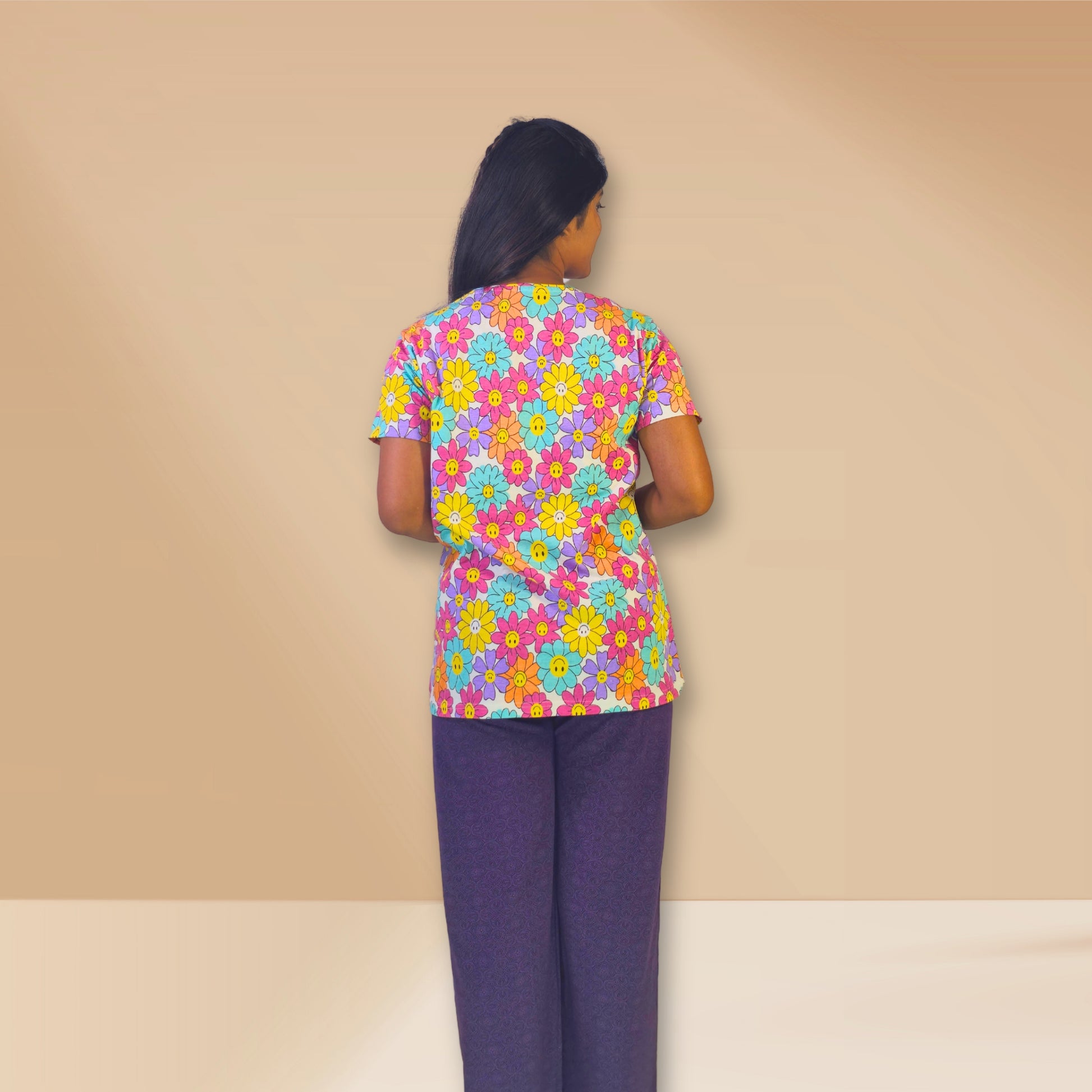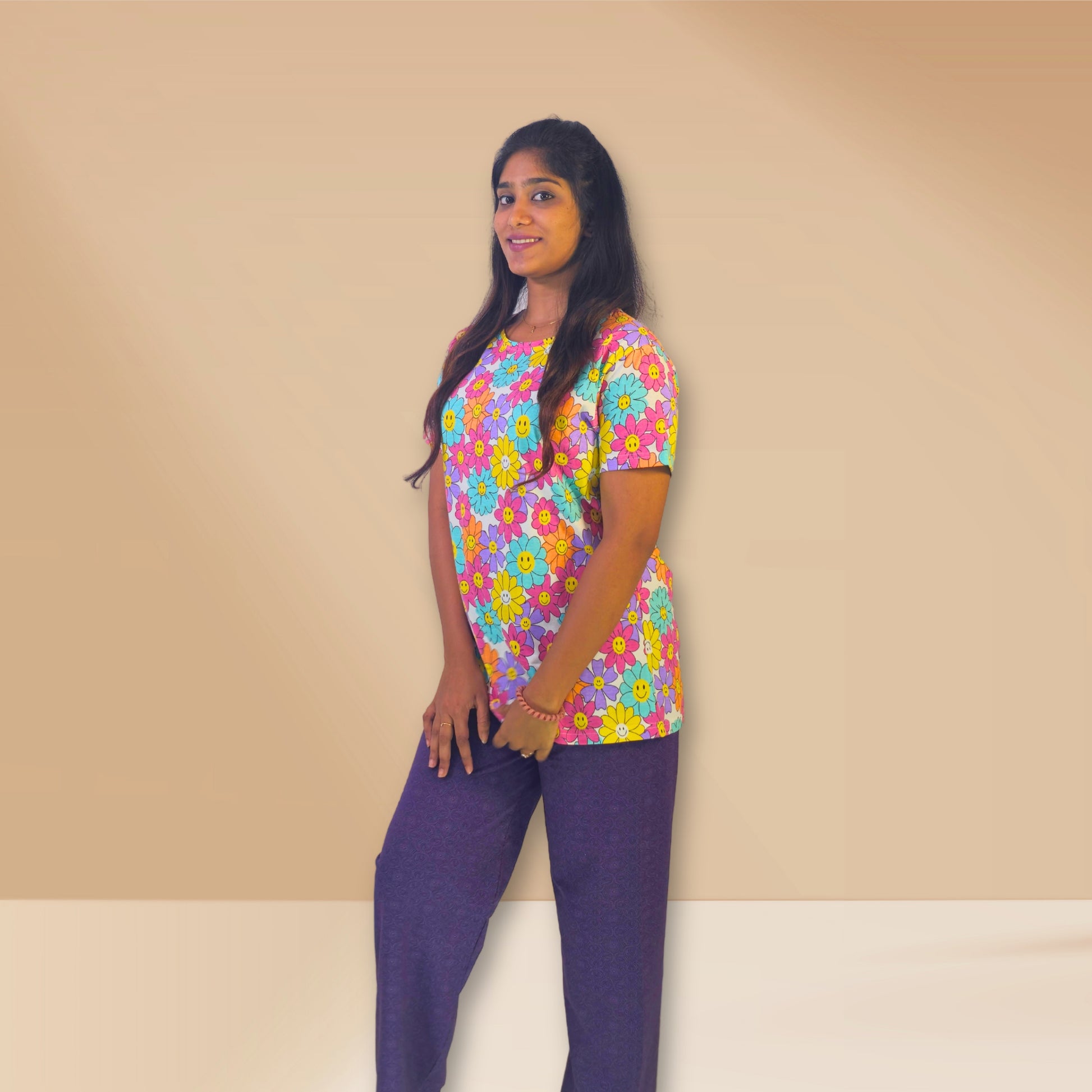 White and Raw Amethyst Purple with sunflower and self prints M&M Night dress