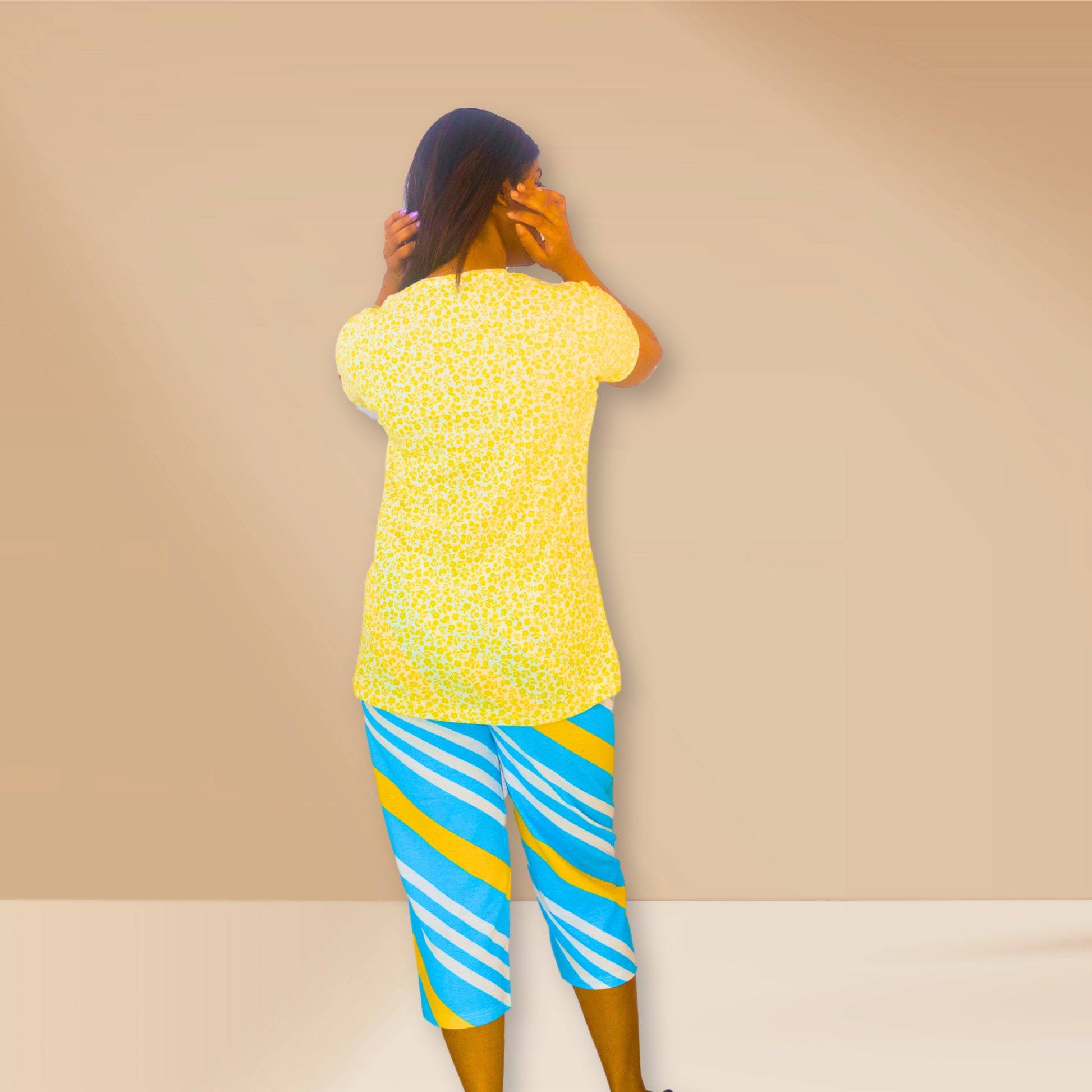 Top: Light yellow with small yellow floral prints